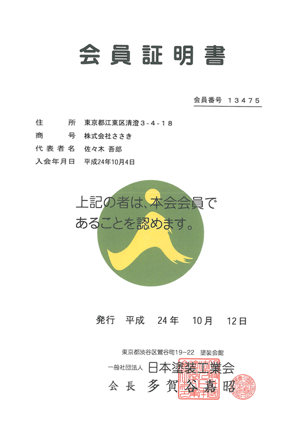 弊社は「住宅リフォーム事業者団体国土交通大臣登録」一般社団法人 日本塗装工業会会員です。